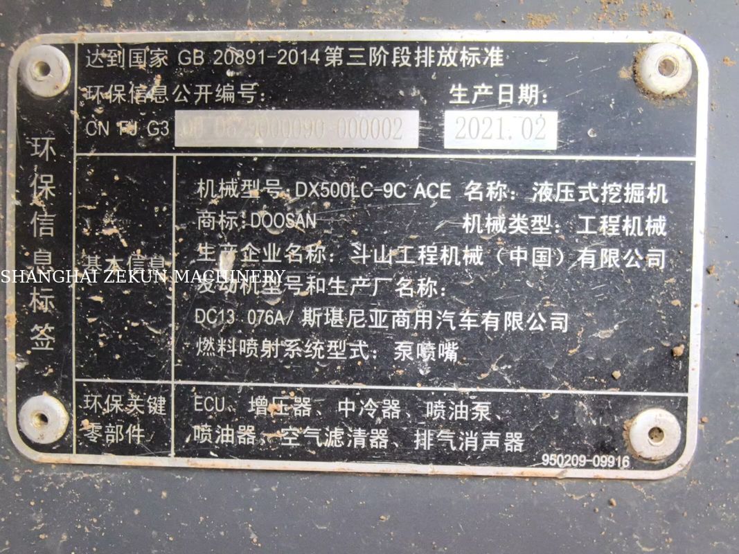 La 2021 Doosan DX500LC-9C es una potente excavadora hidráulica de clase de 50 toneladas diseñada para entornos de alta producción. Con 7857 horas de trabajo, esta máquina se mantiene en buenas condiciones de funcionamiento, ofreciendo un rendimiento fiable para trabajos exigentes.
